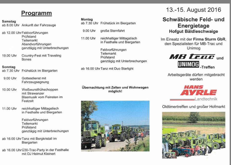 RE: Schwäbische Feldtage mit MB-Trac Treffen Bäldleschwaige 13.08.-15.08.16