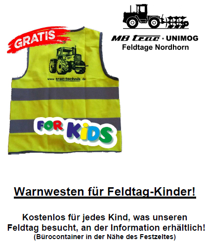 Um die Sicherheit für unsere kleinen Gäste zu erhöhen haben wir Warnwesten anfertigen lassen, die kostenlos bei uns an der Information für jedes Feldtag-Kind hinterlegt sind.