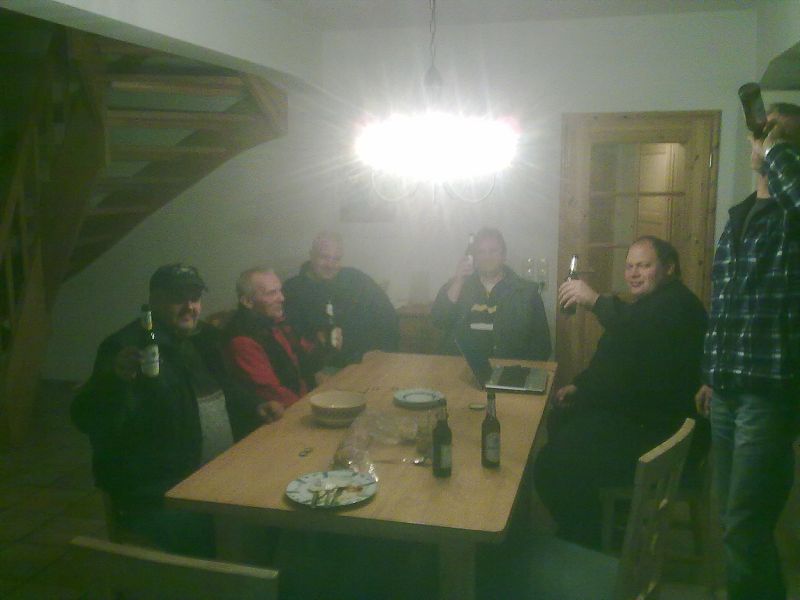 Moin Tracgemeinde, Hartmut, Jowi, Benno, Johannes und sein Sohn, sind inzwischen in Kiekbusch eingetroffen. Nach einer kleinen Mahlzeit am Grill haben wir dann noch den Ablauf des morgigen Tages geplant, wie ihr unschwer auf den Fotos erkennen könnt, hierzu wurde mal wieder "Waldmeister-Sahne-Likör" gereicht -lecker!!!Vor Ort war auch schon Axel.S.