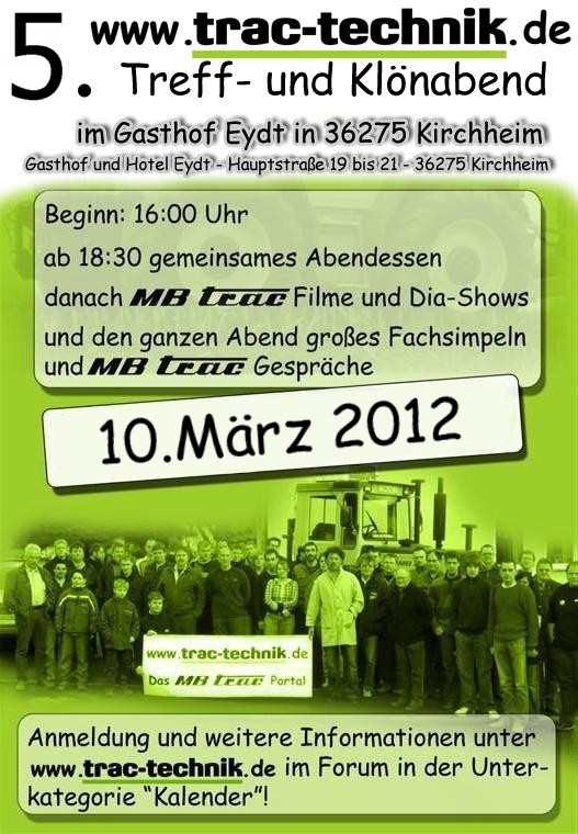 Da der trac-technik.de Klönabend mittlerweile zu einem festen Punkt im Terminkalender geworden ist, findet er natürlich auch in 2012 wieder statt!