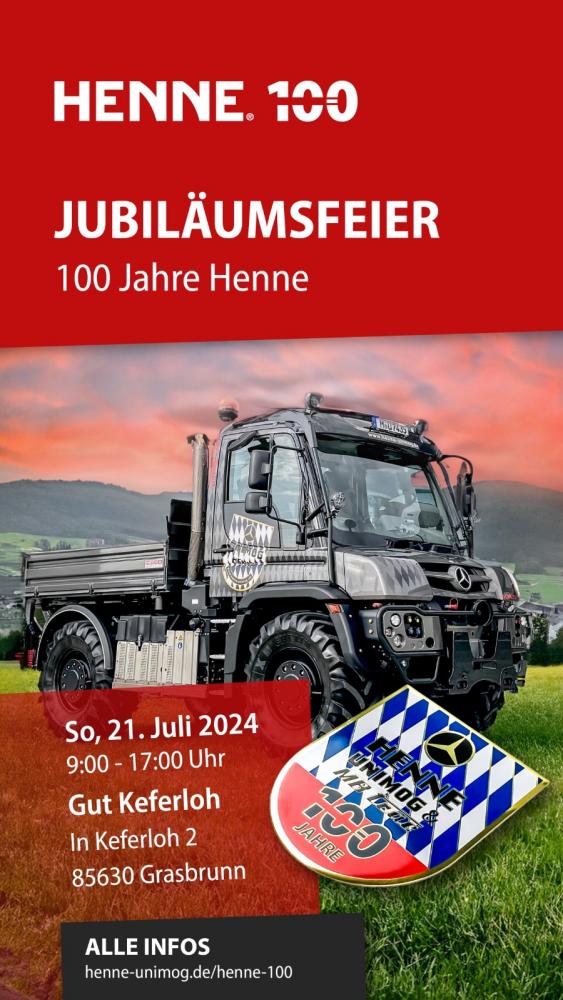 anlässlich des 100-jährigen Firmenjubiläums von HENNE wird auch ein großes Unimog und MB trac Fahrzeugtreffen stattfinden.
